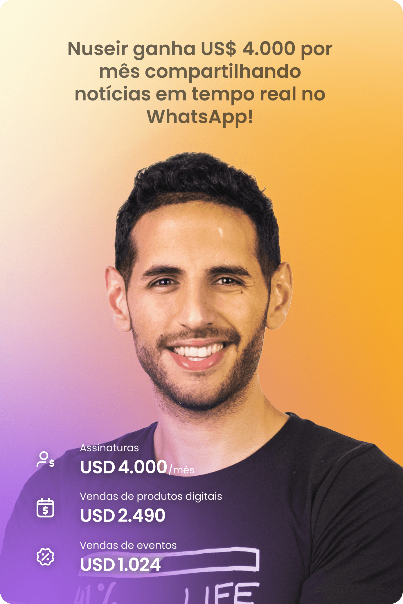 O Nas.io é a ferramenta multifuncional que vai transformar sua comunidade em um negócio. Assinaturas, produtos digitais, eventos pagos e muito mais.