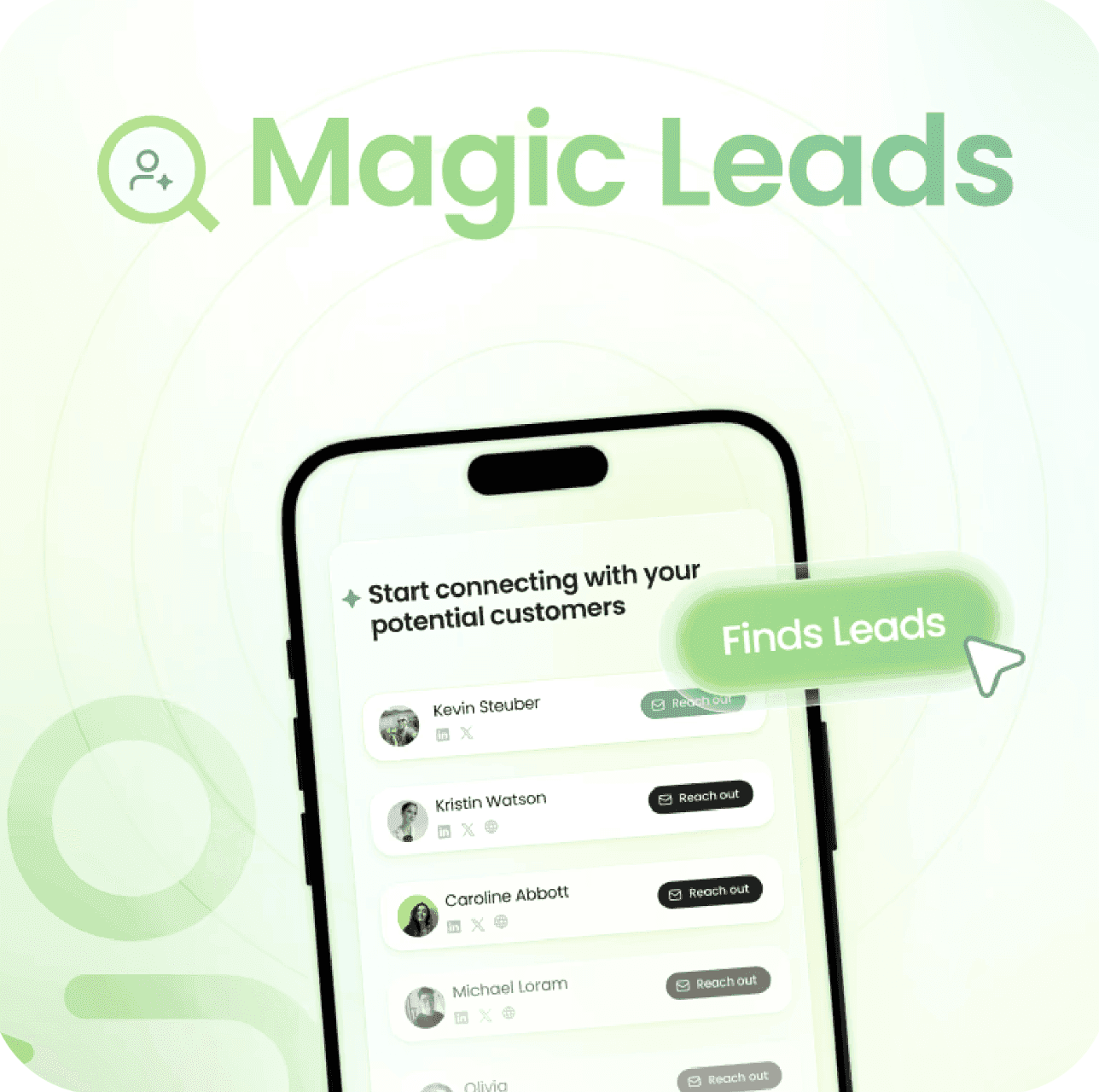 Our AI outreach tool scans the internet and finds up to 500 leads